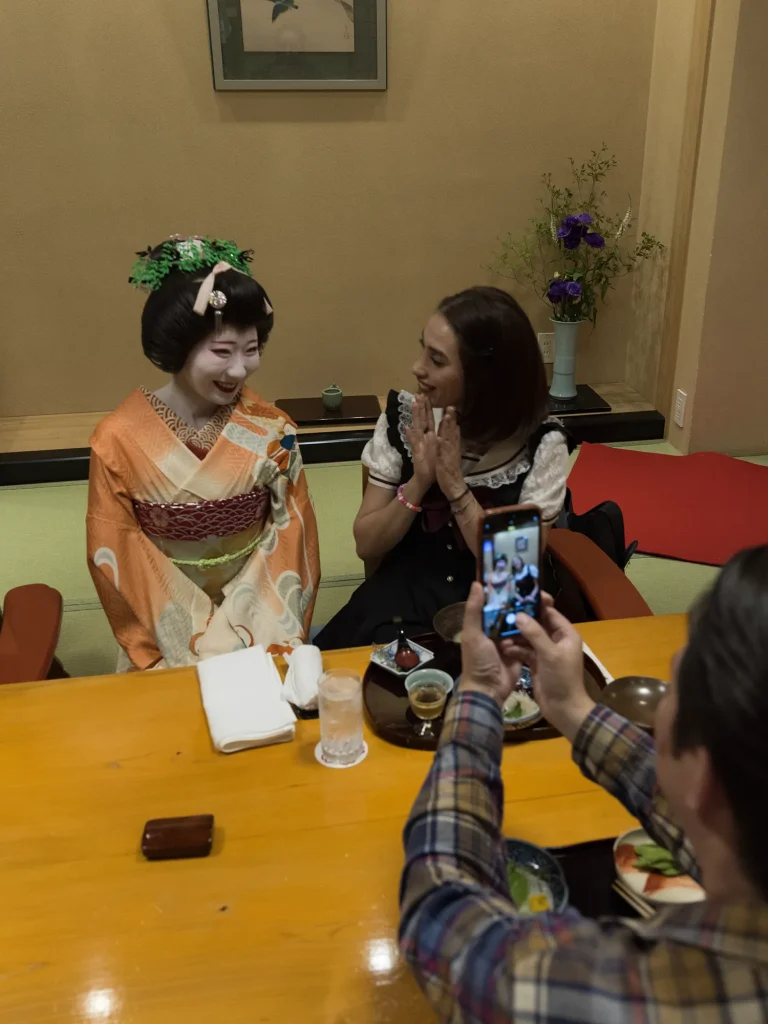 The geisha will attend your dinner (or meal) table. Please enjoy the lively conversation with them.